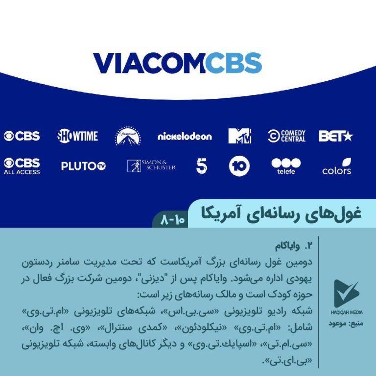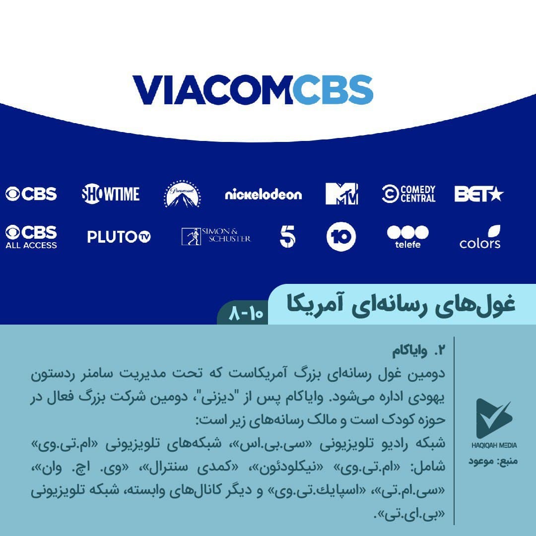 دومین غول رسانهای بزرگ آمریکاست که تحت مدیریت سامنر ردستون یهودی اداره میشود. وایاکام پس از “دیزنی”، دومین شرکت بزرگ فعال در حوزه کودک است و مالک رسانههای زیر است: