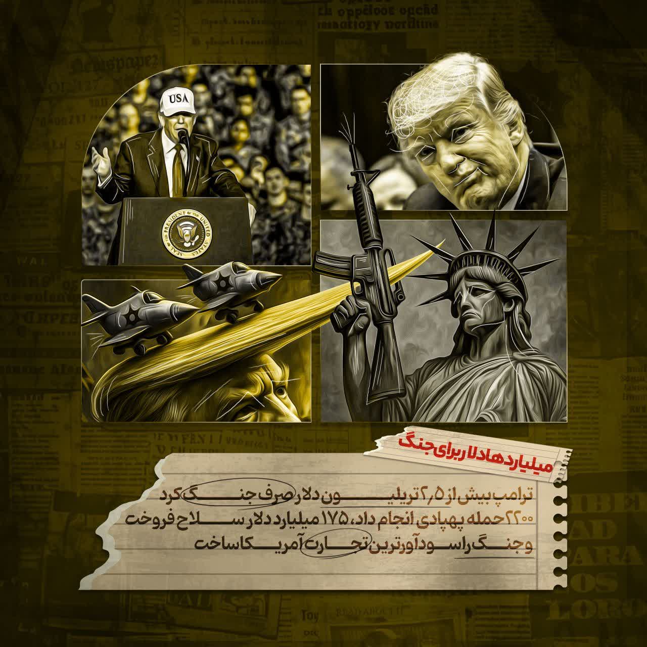 ترامپ بیش از ۲٫۵ تریلیون دلار صرف جنگ کرد ٢٢٠٠ حمله پهپادی انجام داد ۱۷۵ میلیارد دلار سلاح فروخت و جنگ را سودآورترین تجارت آمریکا ساخت